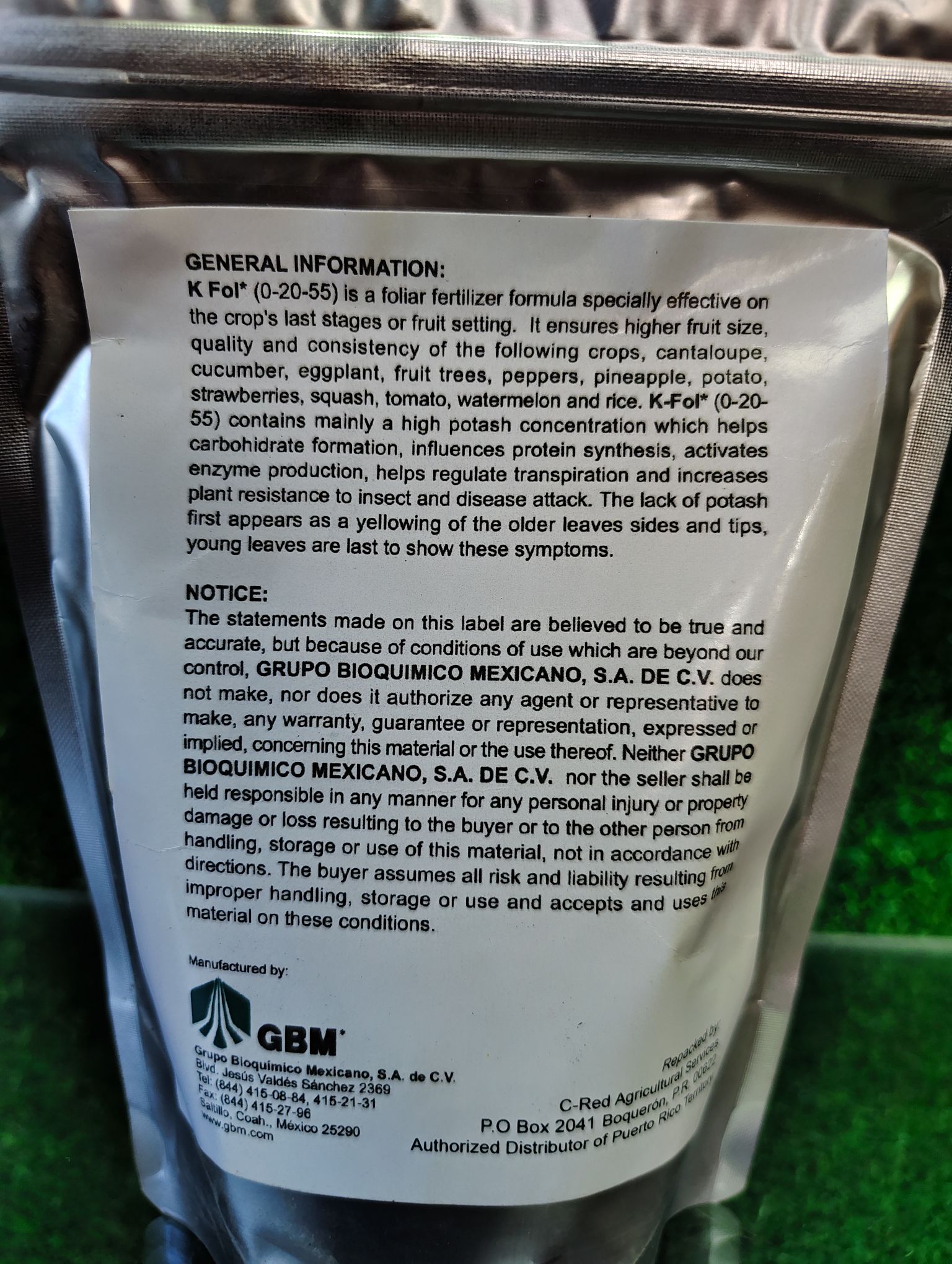 The product also includes micronutrients and phytohormones that help with flower set and enhance plant resilience to stress factors. K‑Fol comes as water‑soluble crystals that are diluted and sprayed onto foliage for uniform coverage.